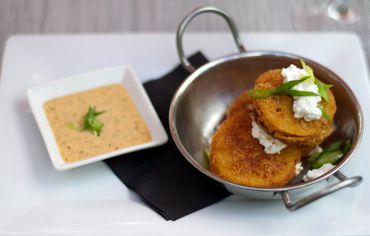 Certainly not on the beaten path, this restaurant is the epitome of the phrase "Destination Location ". And WOW, is it worth the trip! We went in with almost no hunger, coming off a late sushi feast, and just ordered a few "Small Plates" - Shrimp and Cheesy Grits, Chicken Livers and Pears in mushroom Masala cream, Fried Green Tomatoes w